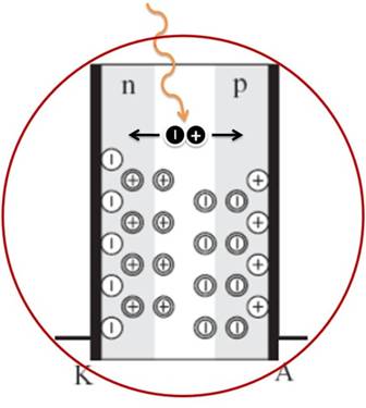 햇빛 유입 -> p-n junction 내부의 전자가 입자성에 의해 빛에 부딪혀서 자유획득 -> n-type으로 이동 -> 전위차 발생
