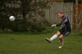 축구선수가 공을 발로차서, 발에 맞게 되는 순간!!
