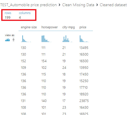 이렇게 해주고 [Visualize]를 해주면 기존에 205개 있던 데이터가 199개로 줄었네요!