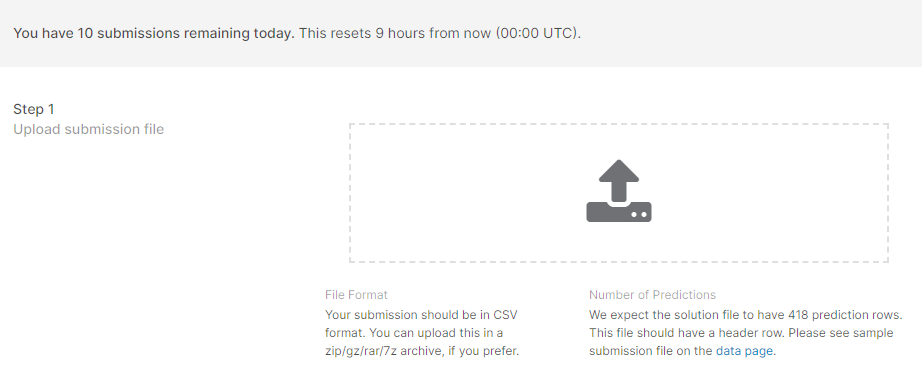 Test한 결과를 확인해보고 싶을때는, 여기 [Submit Predictions]를 클릭해서