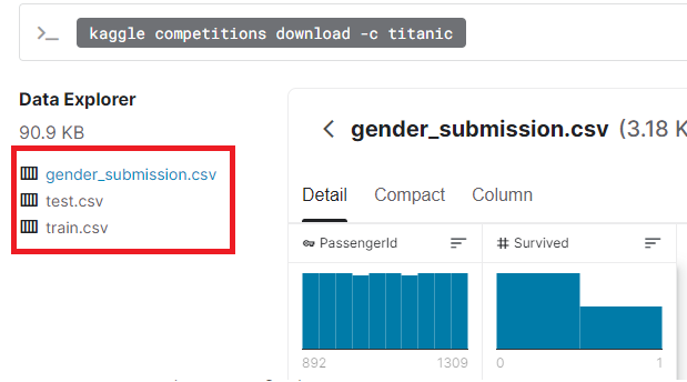 한 컬럼은 401~800, 나머지 한컬럼은 각각의 사람들에 대한 생존유무(0/1)로 채워서 csv파일로 저장하고 제출하면됩니다.
