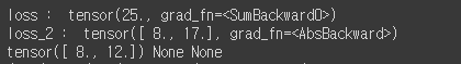 loss함수가 Z에 대한 함수였기에 [8,12]로 나타내지만, Y에 대한 함수였다면 y'=2x =[4,6]을 print하게 됩니다.