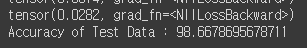 print("Accuracy of Test Data : {}".format(100*correct/total))