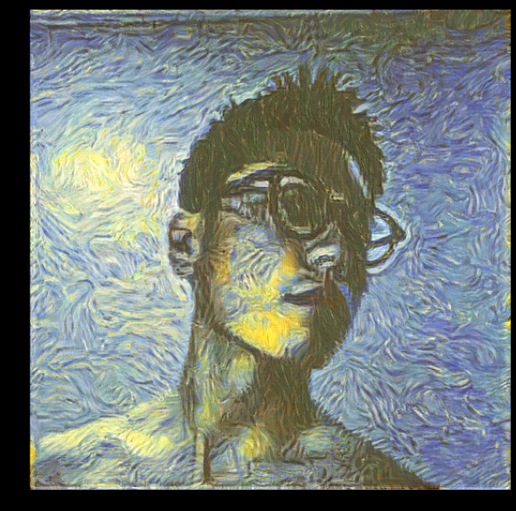 고흐의 "별이빛나는밤에"를 Style image로 하고, 제 얼굴사진을 적용하여