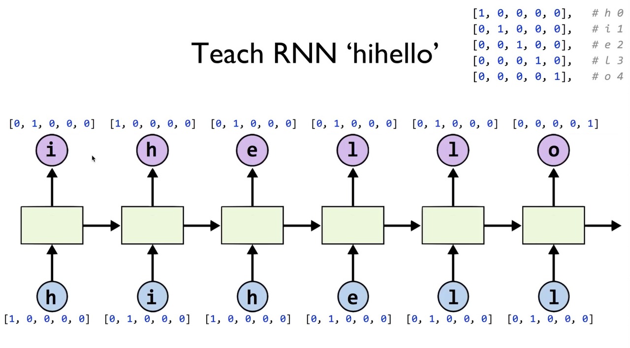 그럼 H라는 단어를 쳤을때 E L L O라고 다음 값이 나올 수 있도록 학습이 되어야겠죠