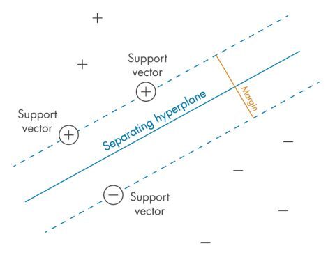 데이터들을 N차원의 좌표축으로 뿌린 후 , 원점과의 거리를 기준으로 선(Hyper Plane)을 그어 Classification하는 것입니다.