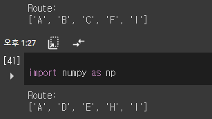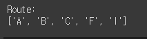 이렇게 하고 나니 ABCFI라는 최적경로를 찾아내는것을 확인할 수 있습니다!