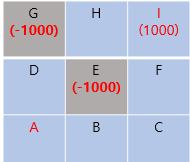 즉, G와 E에 보상을 -1000으로 두어 반드시 A->B->C->F->I가 최적경로가 나오도록 해보고자 합니다.