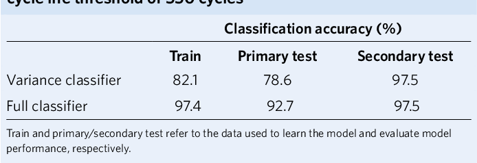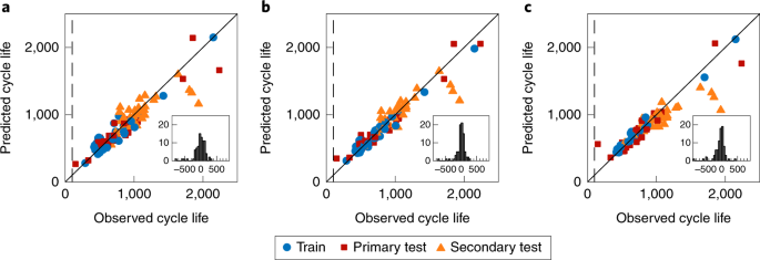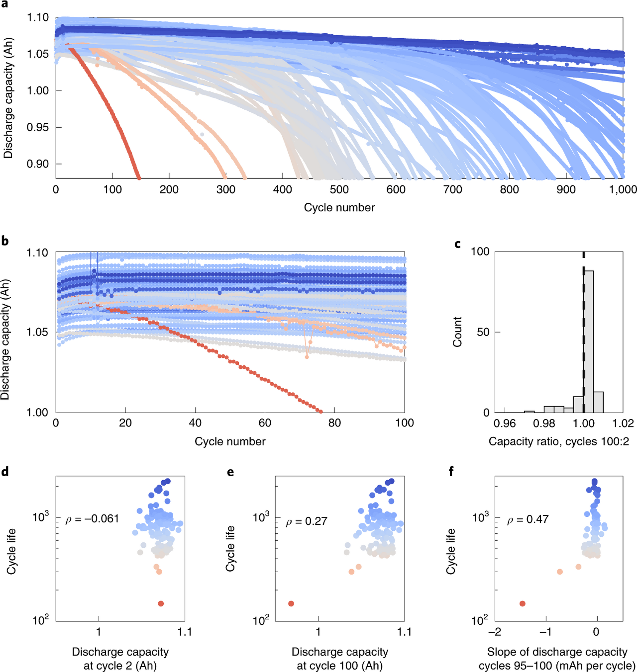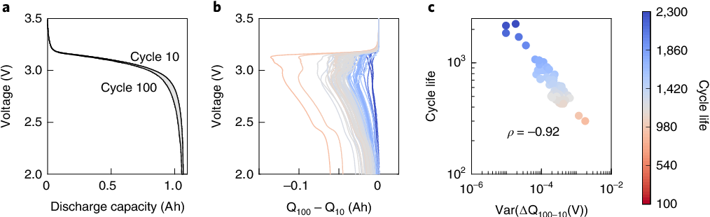 1. Severson, K.A., Attia, P.M., Jin, N. et al. Data-driven prediction of battery cycle life before capacity degradation. Nat Energy 4, 383–391 (2019). https://doi.org/10.1038/s41560-019-0356-8