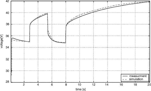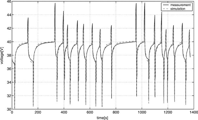 실제 차량에서 쓸수있다고 가정하고, Dynamic하게 전류를 주었다고합니다. x축을 보시면 시간 간격이 꽤나 촘촘함을 알수 있습니다. 첫 0.2초간 500A방전, Regenerative를 고려하여 38A 충전 ... 이런식으로 진행을 하였고, 충전과정에서 일부 오차가 벌어지는데 이건 VRLA의 gas에 기인한것이라고 합니다.