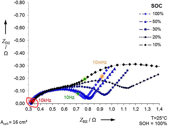 [출처] Bernhard Liebhart, Lidiya Komsiyska, Christian Endisch,Passive impedance spectroscopy for monitoring lithium-ion battery cells during vehicle operation,Journal of Power Sources,Volume 449,2020,227297,ISSN 0378-7753,