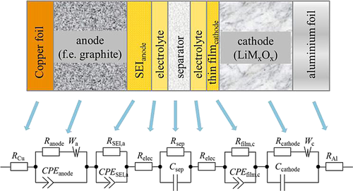 다음, SEI layer는 저항과 CPE의 병렬연결로 나타내었으며, electrolyte의 저항은 전해질의 리튬이온 conductivity 정도를 나타내는 값입니다. 예를들면, 열화가 되거나 저온인경우, 이 conductivity가 낮아지게되고 저항성분은 증가하게됩니다.