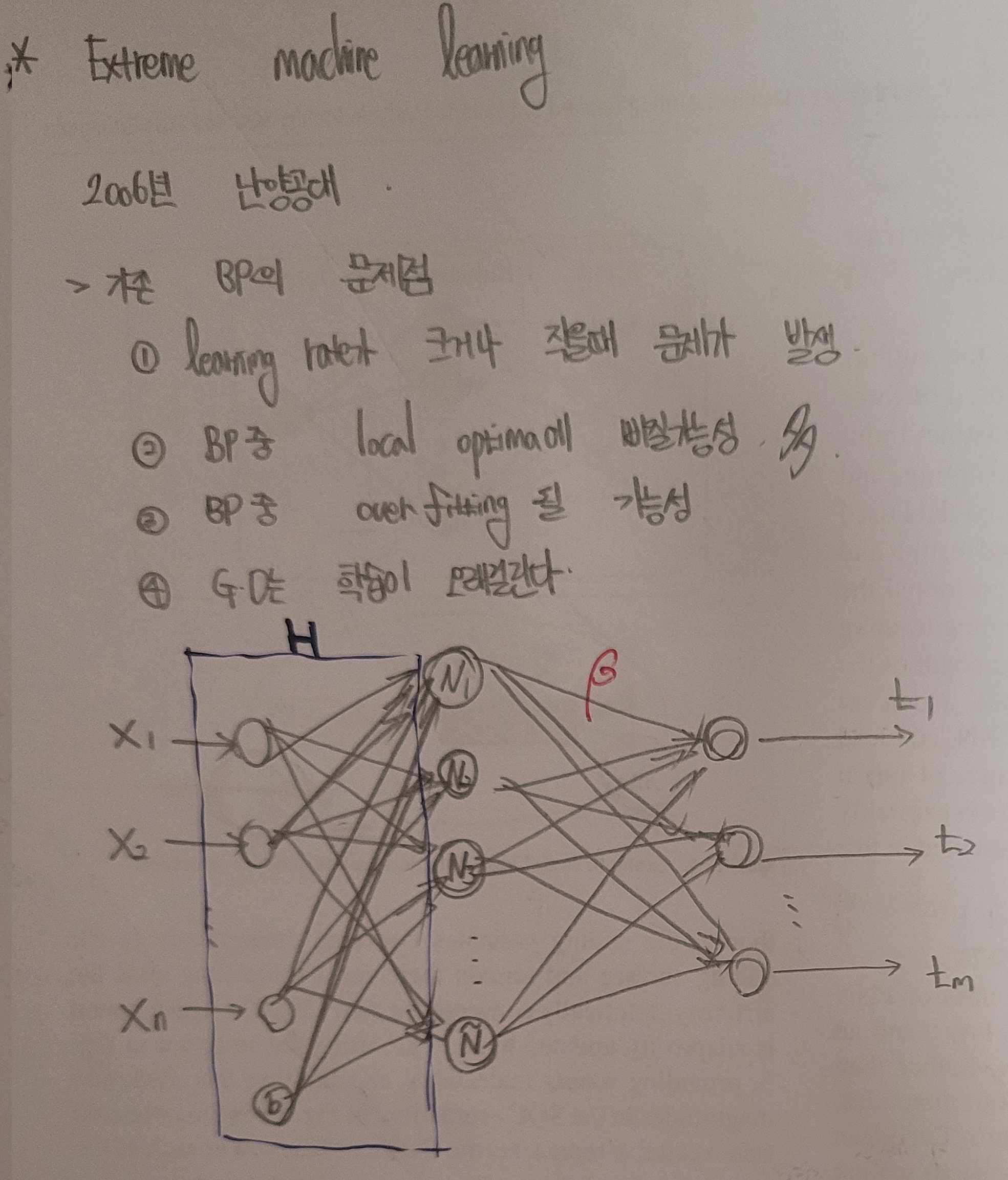 ELM은 2006년 난양공대에서 나온 논문으로, MLP의 Backpropagation에서 Gradient Descent대신 Moore-Penrose Generalized Inverse Matrix를 구해 바로 최적의 Weight값을 얻어내는 방법입니다.