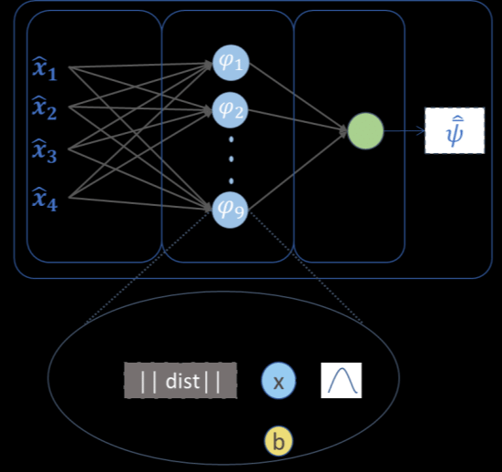 MLP(Multilayer Perceptron)과 동일하게 Back Propagation을 통한 학습을 진행하지만, Input layer와 hidden layer사이의 관계는 Gauss 함수입니다.