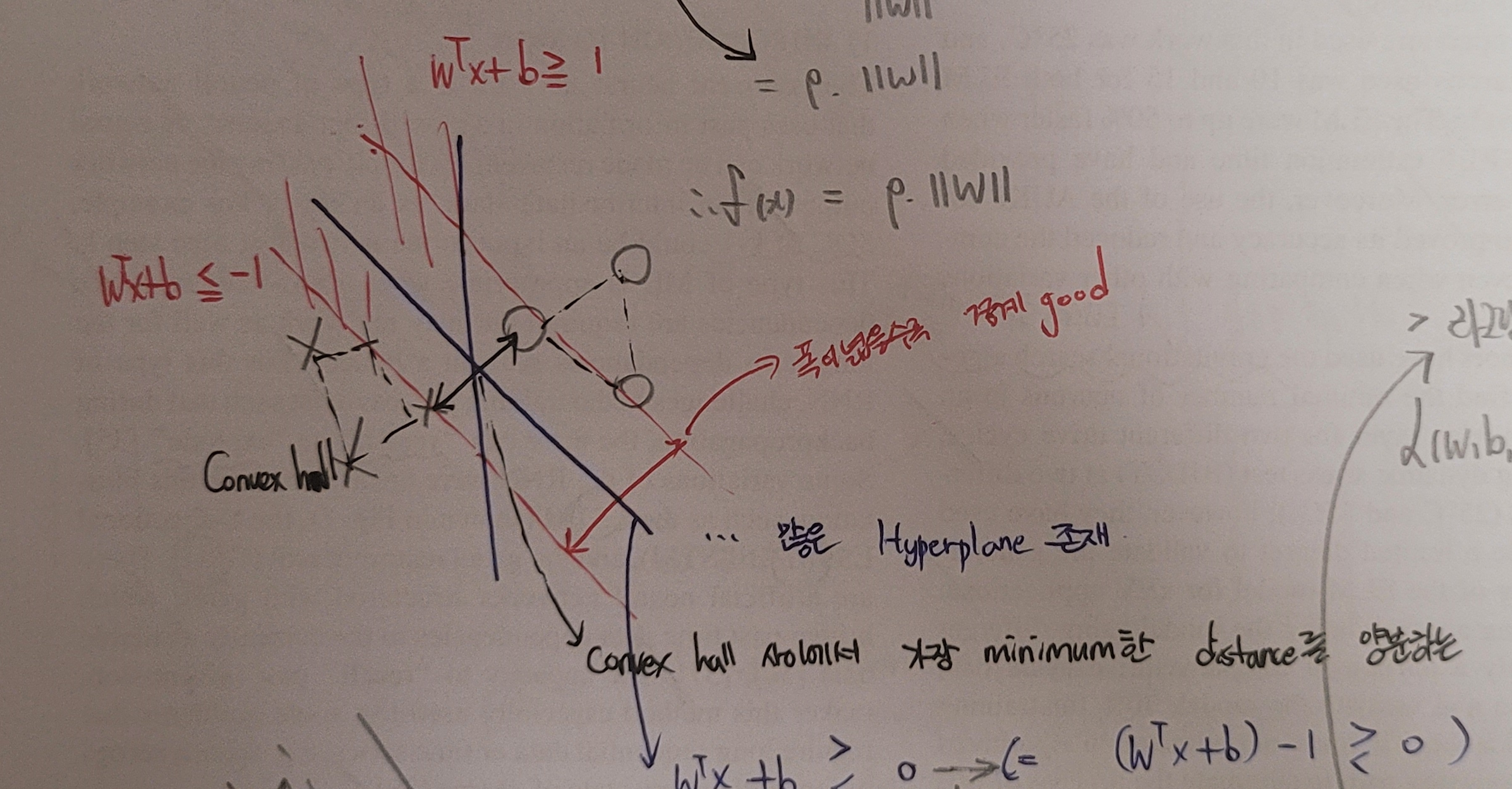 (왜냐하면 서포트벡터와 Hyper plane의 거리가 멀다는것은 그만큼 두개의 클래스가 확실히 구분된다는거죠)