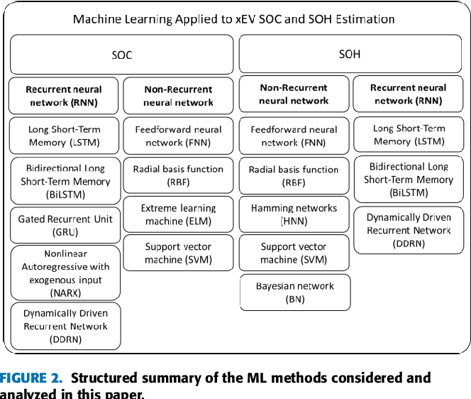 [출처] C. Vidal, P. Malysz, P. Kollmeyer and A. Emadi, "Machine Learning Applied to Electrified Vehicle Battery State of Charge and State of Health Estimation: State-of-the-Art," in IEEE Access, vol. 8, pp. 52796-52814, 2020, doi: 10.1109/ACCESS.2020.2980961.