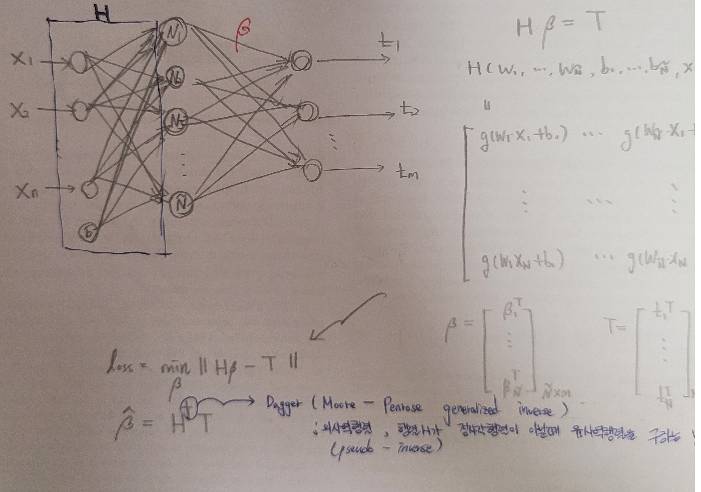 여기서 B = inverse(H)*T_measure가 되면 Loss값이 바로 0이 나오게됩니다. (MLP는 Back Propagation반복을 통해 이 값을 찾아냅니다.)