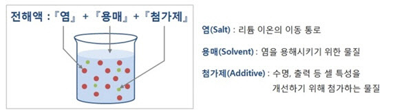 배터리 셀 내부에서는 리튬이온이 양극과 음극을 자유로이 오가야하기때문에 리튬이온전도도가 높은 소재를 사용하는것이 필수적이며, 이런 리튬이온의 이동통로 역할을 해주는것이 염입니다.