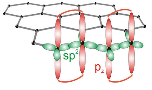 이 pi-결합에 의해 기존 탄소처럼 완벽하게 서로 연결되어 전자가 흐를 틈을 주지 못함과 달리, 전자가 흐를 통로가 생기게 됩니다.