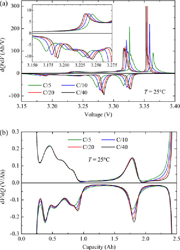 (a)그래프를 보면, C-rate가 낮을수록 왼쪽으로 Shift되는 ICA 개형을 얻을 수 있는데,