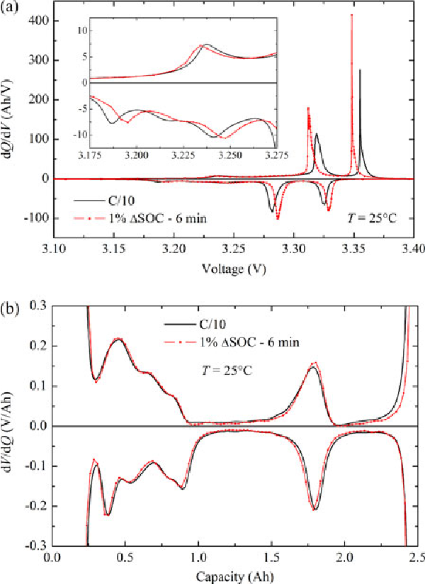 LFP는 Electrode Potential Range가 낮고 OCV Plateau한 특성이 강해 DVA로 특성을 파악하기 어렵다고 하며, Positive Electrode의 전위변화보다 Negative Electrode의 Potential에 의존성이 강하기 때문이라고 합니다.