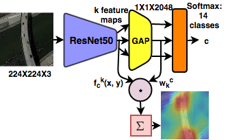 이외에, CAM이라고 불리는 연구 계열의 ResNet의 개념을 차용하여 Convolution Layer로 Feature Extracting을하고 Classifier 부분에 pixel값을 Flatten하여 Vector로 Input을 넣는게아니라 GAP(Global Average Pooling)을 하여 이미지의 특성을 그대로 남긴 상태로 GAP의 Weight와 Bias를 보고 분석하는 방식도 있습니다.
