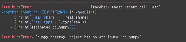 하지만, 자세히 코드를 뜯어보면 이미 numpy array인 함수를 to_numpy로 다시 또 변경하고자 할때 해당 에러가 발생합니다.