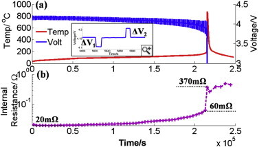 배터리 대용량 각형셀(20Ah 수준)을 직접 열폭주 시키며 저항/전압 변화를 모니터링 하는 논문입니다.