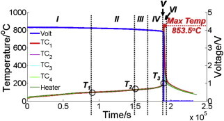 : 온도가 exponential하게 상승하며, 저자의 표현에 따르면 눈깜짝할 사이 온도가 800'C이상 도달한다고 합니다.