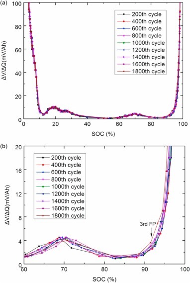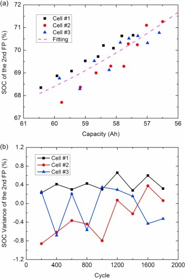 SOC 12%부근, 69%부근이 처음 찾아낸 두가지 포인트인데요, 상기 그림에서 보시다시피 Cycle에 따라서 크게 변하지 않는 모습을 보이고 최대오차는 1%, 상대오차는 2%로 일관성을 유지하는 것을 발견했다고합니다.
