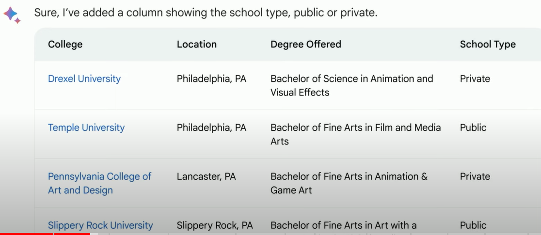 기술 시연에서는, 본인 집 주변에서 가깝고 좋은 대학교를 가고싶다는 질문에 하기와 같이 Google Map을 연동하여 위치를 찍어줄 뿐 아니라, Table형식으로 학교 소개까지 정리해주는것을 볼 수 있습니다.