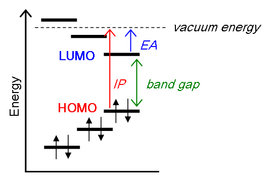 즉, LUMO는 HOMO보다 한 층 위에있고 에너지 준위가 높습니다. (LUMO > HOMO)