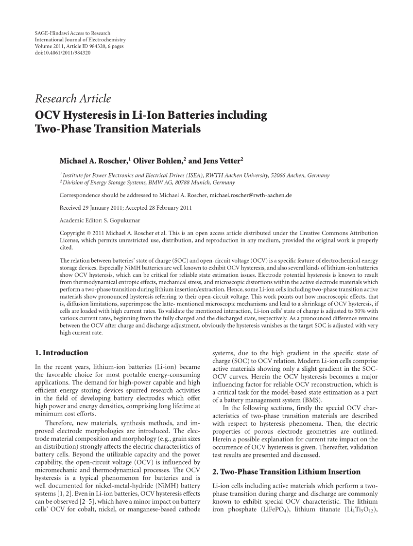 [1] Michael A. Roscher, Oliver Bohlen, Jens Vetter, "OCV Hysteresis in Li-Ion Batteries including Two-Phase Transition Materials", International Journal of Electrochemistry, vol. 2011, Article ID 984320, 6 pages, 2011. https://doi.org/10.4061/2011/984320https://doi.org/10.1016/j.asoc.2022.109903.