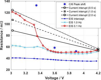 저자는 SOHc, SOHr(0%, 100% SOC에서만 측정)에 대한 ICA 특성도 분석하고, C-rate별 영향성에 대해서도 정리하여 Peak Shift를 통해 상기와 같이 1/6C-rate ICA를 통해 0.1Hz EIS로 추정한 Resistance를 어느정도 추정해냈다고 합니다.