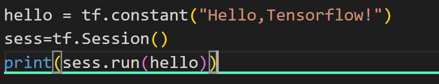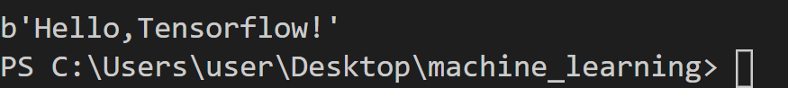 즉, 해당 코드는 hello라는 변수에 "Hello tensorflow!"라는 데이터를 저장시켜놓고
