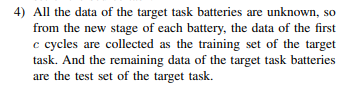 그리고 이 논문에서 그나마 가장 재미있는 부분은 Transfer Learning 을 사용하겠다는것입니다. Domain Adaption을 하는것에는 아주 많은 방식이 있습니다. 배터리쪽만봐도 Transfer Learning을 하거나, MMD를 통해 분포 유사성을 학습한다던가,... 아주 다양한 방법이 있는데, 본 논문은 Target data의 초기 사이클 데이터만으로도 후기 사이클 SOH변화정도를 예측할수있도록 하는것이 목표입니다. 물론 제가 연구하는것과는 다르게, 본 논문의 Target/Source Domain은 같은셀의 다른 C-rate 데이터인것 같습니다만, 일단은 여러데이터에 대해 학습을 한 이후 ViT부분은 Freezing해놓고 추가 Target Data에 대해 FCNN만 학습하여 빠르게 학습하면서도 Domain Adaption을 진행하겠다는것입니다. 아주 나이브하지만, 가장 직관적인 방식입니다.