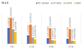 R square나 여러 지표로 성능을 나타냈지만, 보통 MAE나 MSE를 기점으로 Regression 성능을 보는 경우가 많은데요, 어처구니 없게도 5X~45X 모든 데이터셋에서 GRU가 가장 성능이 좋고, TF-SGD가 가장 성능이 안좋습니다. 이건 논문 제목을 Review논문으로 지어야하는게 아닌가 라는 생각이 들 정도로, Transformer의 성능이 안좋게나왔습니다.