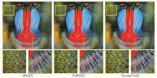 SR-GAN 대비 ESR-GAN이 고주파를 확실히 더 잘잡아내고 그려내는 모습입니다.