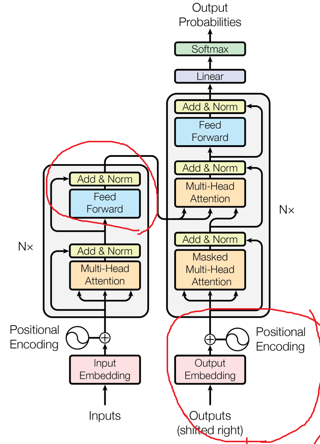 Deocder는 Encoder와 크게 차이가 없습니다. 다만, 학습할때의 입력데이터가 Shifted Right라고 되어있는데요,