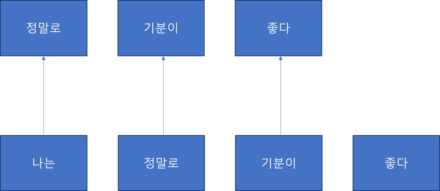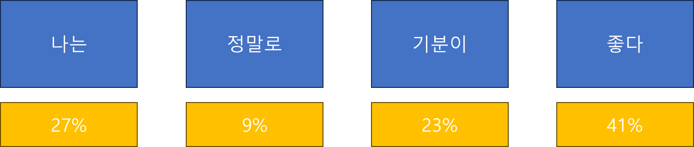 즉, "나는" 다음에 "정말로"가 올 확률을 가장 높게 추정하도록 학습이 됩니다.