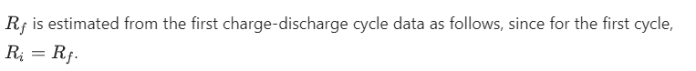 여기서 R_f는 SEI도 형성되기전 완전 첫 사이클에서 하한전압까지 방전하고 회복되는 전압량을 통해 구한 저항값을 의미합니다. 즉, SEI없이 전극과 전해질 사이 아무 장벽이 없을때 완전 Fresh할때의 순수 저항입니다.