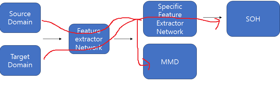 이후, Target Domain 일부분과 Source Domain을 통해 MMD Loss를 최소화합니다. 즉, 둘의 확률분포도가 유사해지는 방향으로 학습을 진행하여 Domain Adaption을 합니다.