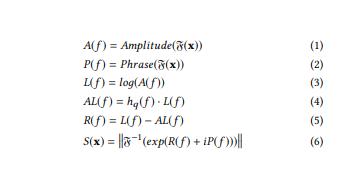 데이터의 주파수 도메인에 대해 Ampltitude를 Log Scailing 하고 이것의 평균값을 구해 Log Scailing한 데이터에 빼고 다시 IFFT한것을 의미합니다. 수학적으론 하기와 같습니다.