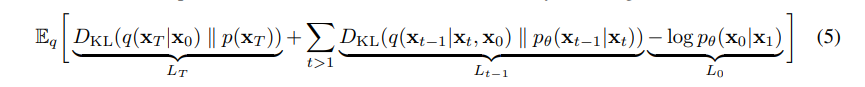 가장 중요한 부분인데, 결국 X_0의 원본이미지를 생성해내는게 학습 목표입니다. 따라서, L_0는 Reverse Process의 제일 마지막 부분으로, 결국 원본이미지를 생성하기 위한 최종 단계이며, KL-Divergence를 통해 두 분포 X_0, X_1간 차이를 학습합니다.