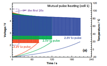 [출처] Yan Ji, Chao Yang Wang,Heating strategies for Li-ion batteries operated from subzero temperatures, Electrochimica Acta,Volume 107,2013,Pages 664-674,ISSN 0013-4686, https://doi.org/10.1016/j.electacta.2013.03.147.