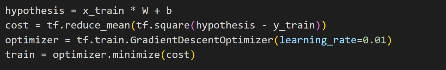 hypothesis = x_train * W + b