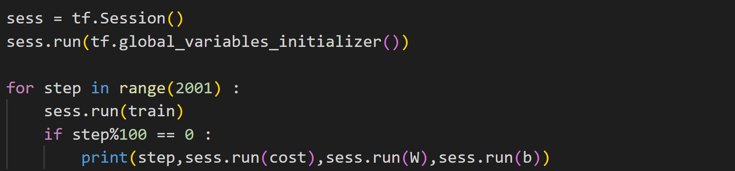 ③ print(step, sess.run(cost),sess.run(W),sess.run(b))