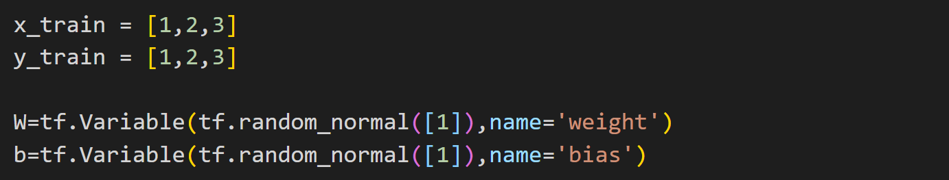 W와 b는 추정할 y=Wx+b의 기울기(Weight)와 절편(bias)에 해당하는 부분입니다.