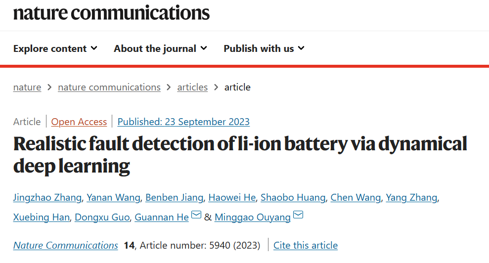 [1] Zhang, J., Wang, Y., Jiang, B. et al. Realistic fault detection of li-ion battery via dynamical deep learning. Nat Commun 14, 5940 (2023). https://doi.org/10.1038/s41467-023-41226-5