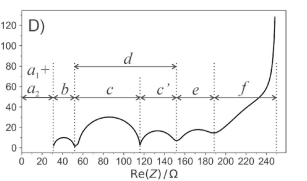여기서 이온-전자의 Interaction이란, EDL(Electrical Double Layer)로 인한 충전 용량, Electrode 분말로의 de(intercalation), Solid phse diffusion과 같은 부분들을 종합하여 나타내며 이것을 하나의 임피던스로 표현합니다.